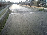 鴨川(賀茂川、加茂川) 北区雲ヶ畑の桟敷ヶ岳や魚谷山を源流とし京都盆地を南北に流れ桂川に注ぐ。延長31km流域面積210平方km。古くから氾濫を繰り返す暴れ川として知られ天長元年(824)には治水を担当する防鴨河使という官職も設けられた。白河法皇は自らの意に沿わないものである天下三大不如意の第1を「賀茂の水」としている。寛文10年(1670)には今出川通〜五条通まで堤防も造られた。昭和10年(1935)にはと三条大橋や五条大橋も流出するなど大きな被害が出て昭和22年川底を掘り下げるなどの改修工事が行われた。江戸時代には京友禅を鴨川の流れにさらす「友禅流し」も行われていた。二条から五条にかけての西岸は5月から9月にかけて京都の夏の風物詩の1つである納涼床の場所となる。 |